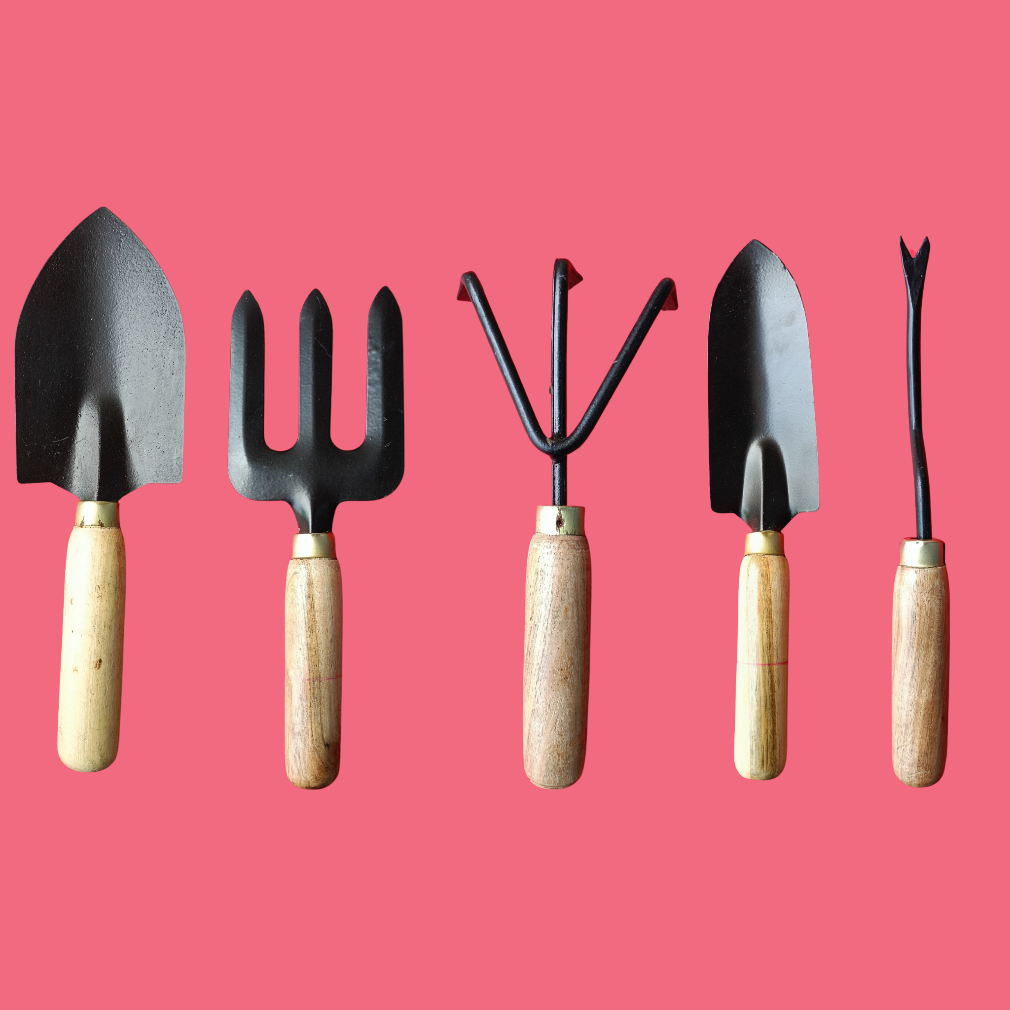 “Master your garden with Hinata Nursery’s mini tool set—Garden fork, Big trowel, Hand rake, Transplanter, and Weeder. Durable, ergonomic, and perfect for planting, weeding, and tending small spaces!”