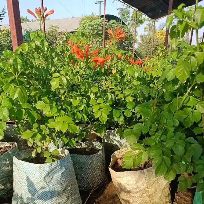 The Tecoma Orange plant is a vibrant flowering shrub known for its trumpet-shaped, bright orange blooms that attract bees, butterflies, and hummingbirds. A fast-growing, sun-loving plant perfect for hedges, borders, or container gardening.